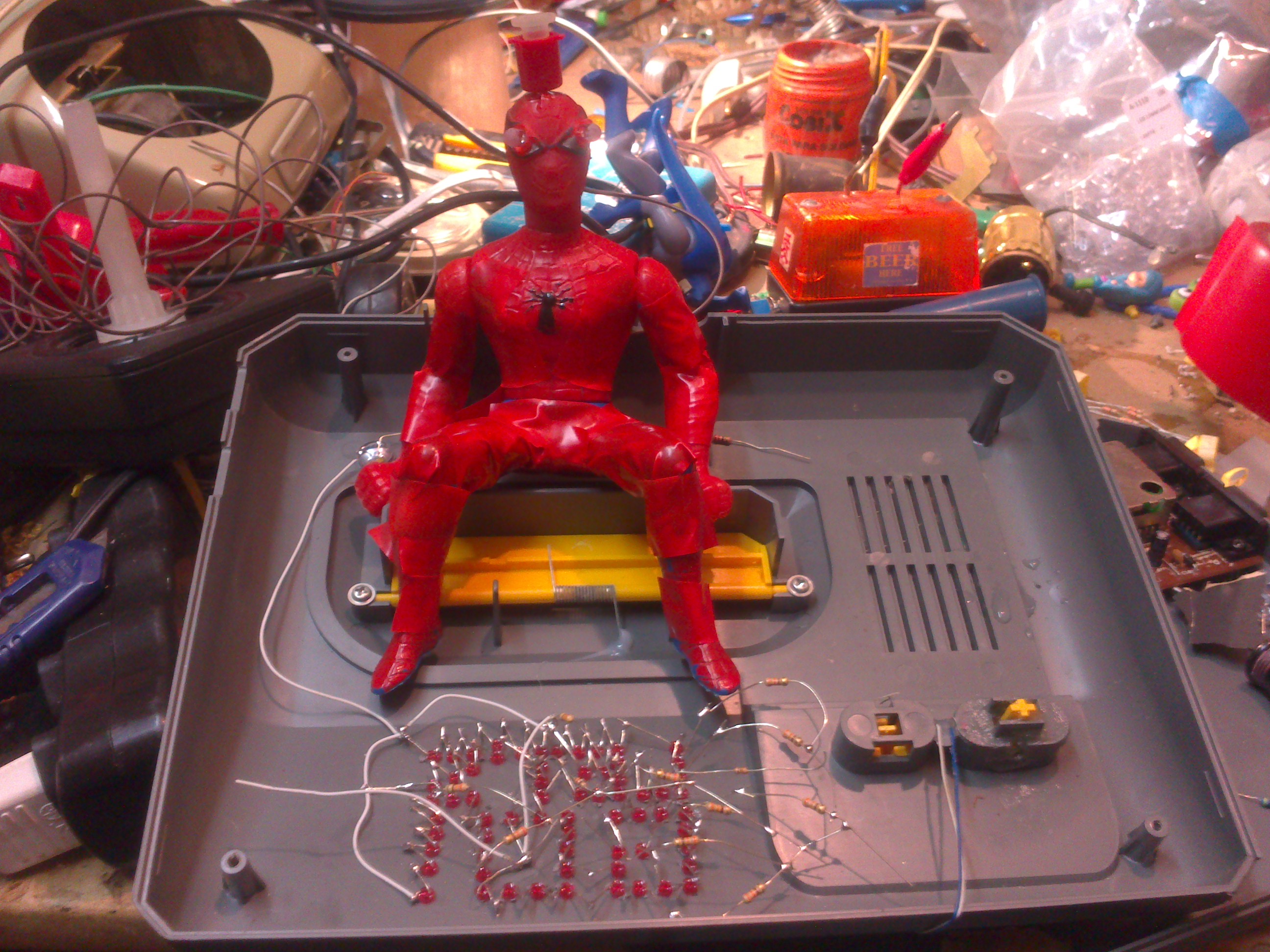 We are participating in the biennial with our Gambiological Armor and new interactive electronic sound devices: circuit bending keyboard, canned atari punk console, spatial ultra sonic hot glue gun and holy father joystick . Also present the Gambiological clothing flagged with the green high-brightness LEDs and reflective bands, among other peculiarities. Working with a 12 volt motorcycle battery, it was inaugurated with a performance by our Grand Master Goose, who circulated through the gallery also wearing an authentic Jury Rigged helmet and a Mickey Mouse Solution style mask, for the delight of those present. Thanks very much to everyone involved in the Zero1 Biennial, without exception.