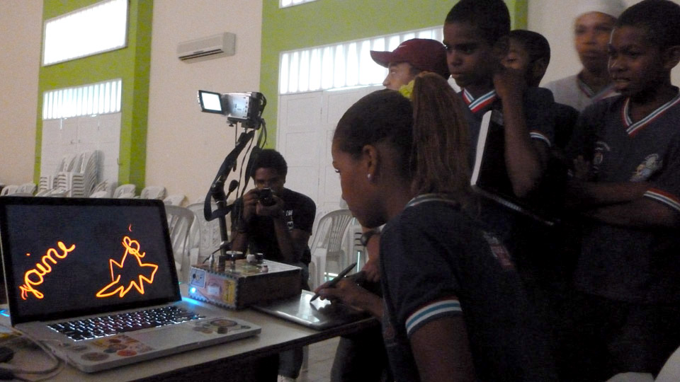 Voltamos à bela Cachoeira, na Bahia, para ministrar workshops e participar do Festival Reconvexo, coordenado pelo amigo e parceiro Fernando Rabelo através da UFRB. Confira abaixo algumas fotos das divertidas aulas de graffiti digital a alunos do Distrito de Belém e Colégio Estadual Cachoeira: