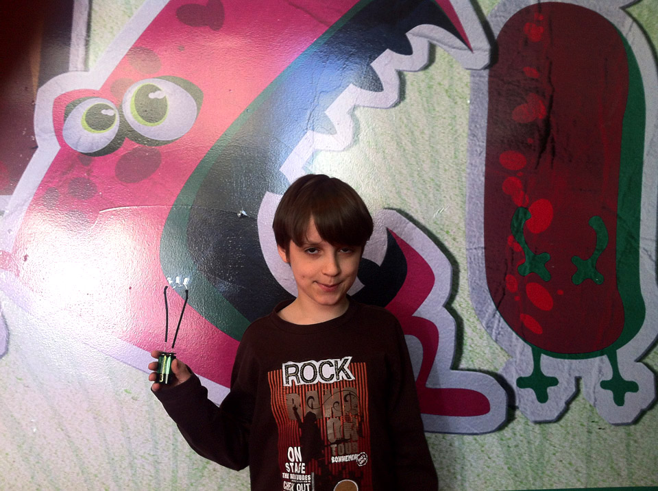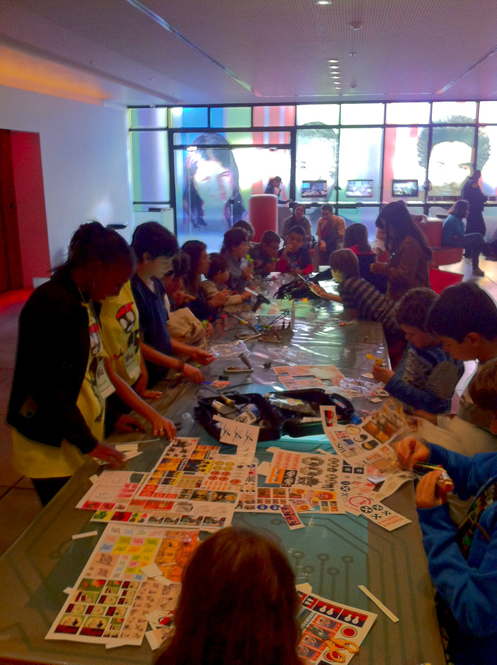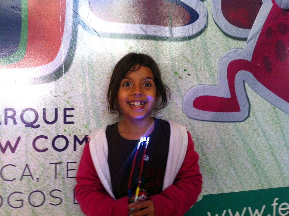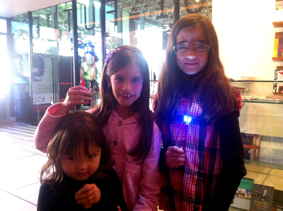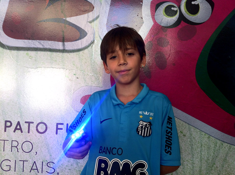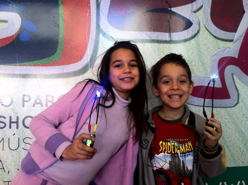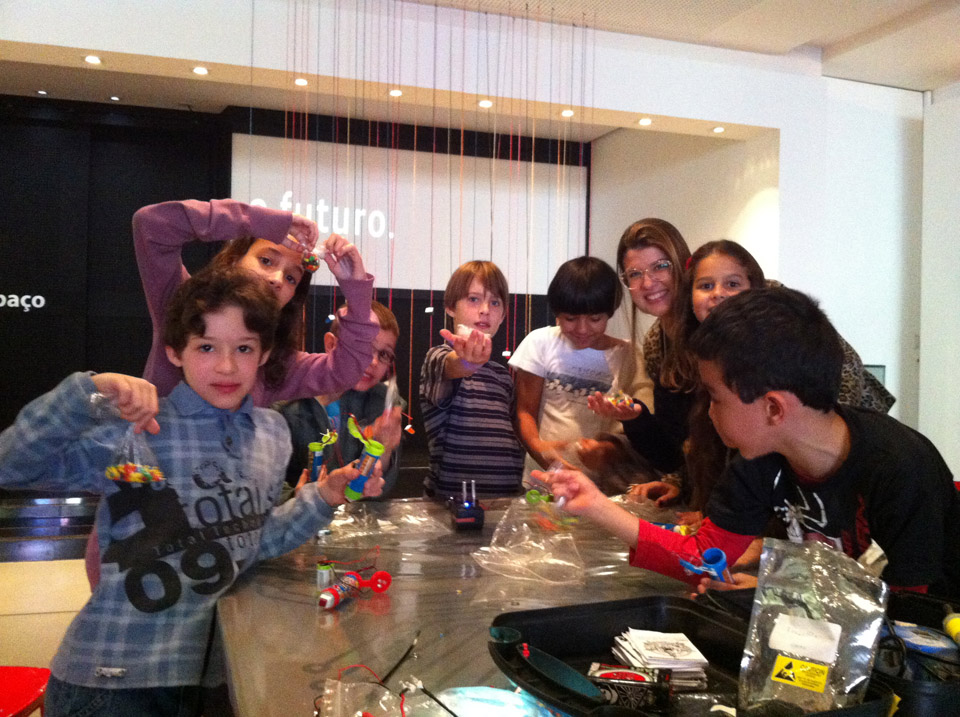 Alunos com lanterninhas de MM's produzidas na oficina