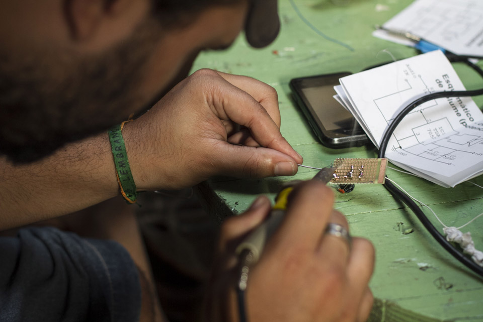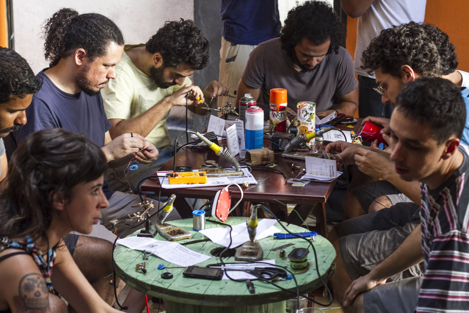 No mês de dezembro/2013 estivemos em São Jose dos Campos (SP) para mais uma oficina "padrão SESC de qualidade". Desta vez o desafio era realizar, em apenas 5 dias, nossa terceira Random Gambièrre Machine - desta vez coletivamente, com os alunos. A viagem foi longa e a carga estava pesada, mas a tranqueira quase toda ficou por lá: objetos modificados gambiologizados subvertidos acesos piscantes aleatórios. Confira abaixo os formidáveis resultados de nossa passagem pela "Capital do Vale".