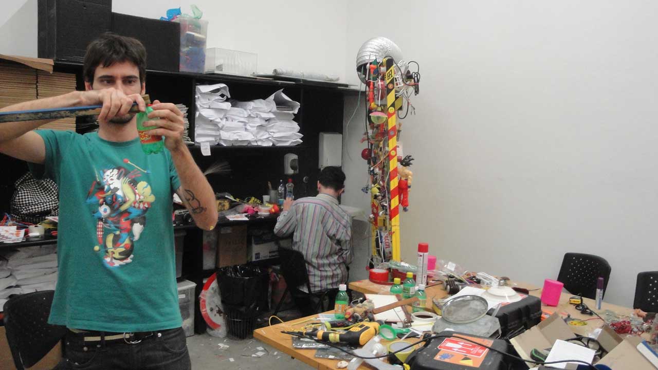 Paredes Avessas é uma instalação de graffiti digital em que o público interage desenhando física e digitalmente e nas paredes do cenário, utilizando marcadores e tótens de marcenaria experimental contendo Tagtools. O trabalho é inspirado no capítulo O País da Folia da obra de Carlo Collodi.