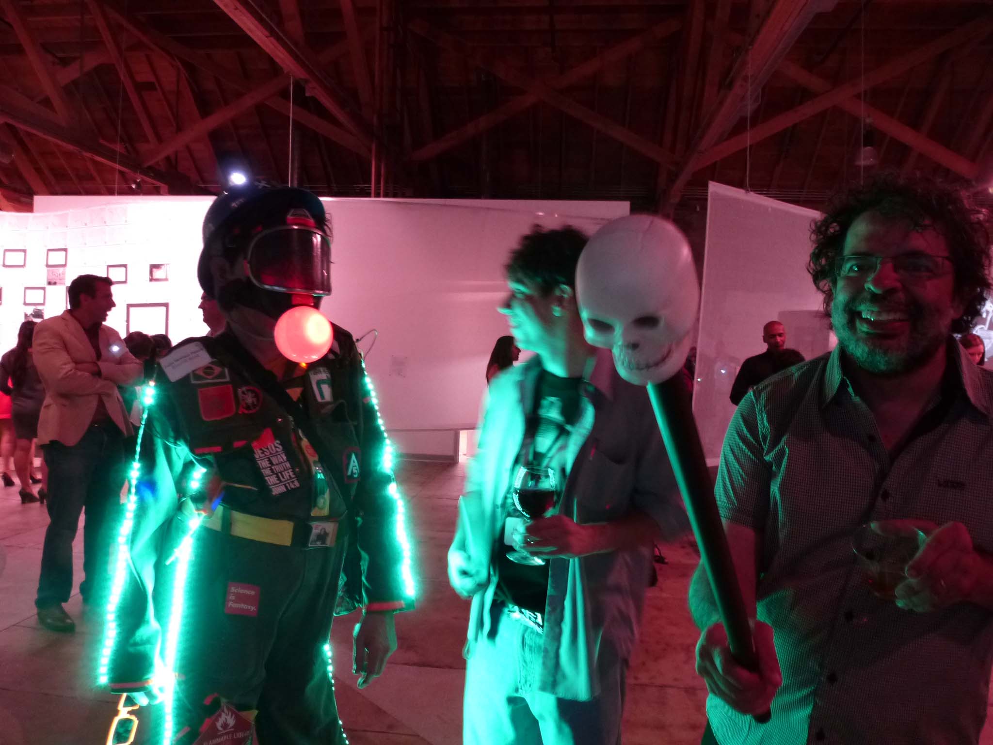 Actually it's ZERO1 Biennial in San José - California! Estamos participando da bienal com nossa armadura Gambiológica e novos aparatos sonoros eletrônicos interativos: teclado circuit bending, atari punk console em lata, pistola espacial hot glue ultra sônica e joystick holy father. Também apresentamos a indumentária gambiológica sinalizada com leds verdes de alto brilho e faixas refletivas, dentre outras peculiaridades. Funcionando com uma bateria 12 Volts de motocicleta, foi inaugurada com uma performance do nosso Grão Mestre Ganso, que circulou pela galeria vestindo também um autêntico capacete Jury Rig e uma máscara no melhor estilo Mickey Mouse Solution para deleite dos ali presentes. Agradecemos a todos envolvidos na Zero1 Biennial, sem exceção, especialmente às curadoras Gisela Domschke e Jaime Austin.