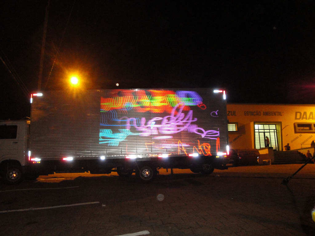 Cole(a)tividade: - Em Belo Horizonte: Ganso tem uma grande lata antiga de filme. Raridade! "Tenho mais algumas. Vou pedir pro Alemãozinho furar", diz ele. Alemão ficou com o braço doendo de tanto furar. Pudera! 552 furos de 3mm. "-Vamos para Salvador! Não vai dar tempo de terminar essa lata Ganso!!". "A Bárbara não está podendo trabalhar, tirou os 4 cisos...". Lucas explica detalhadamente a Isabelle, que nunca tinha soldado, como proceder para interligar e soldar os 3 tipos de LED's. Viajamos. Algumas semanas depois, a lata chega pelo correio em Salvador. Fred desembrulha a encomenda e começa a testar os leds. Consertou algumas poucas séries defeituosas. "Funcionou, Yeah!". "Ficou uma beleza, vamos pendurar lá!", "Essa menina é boa de serviço hein?!".