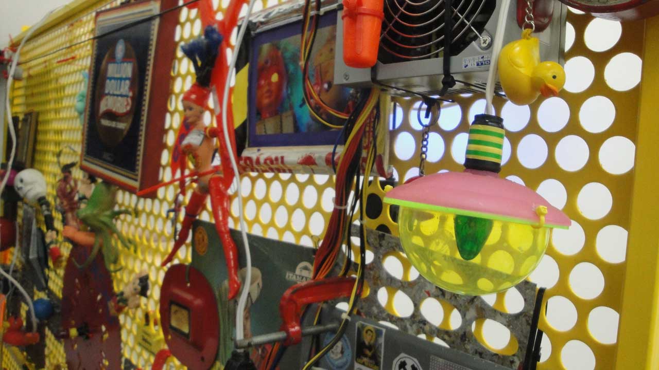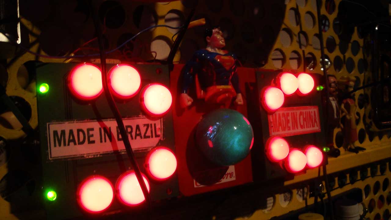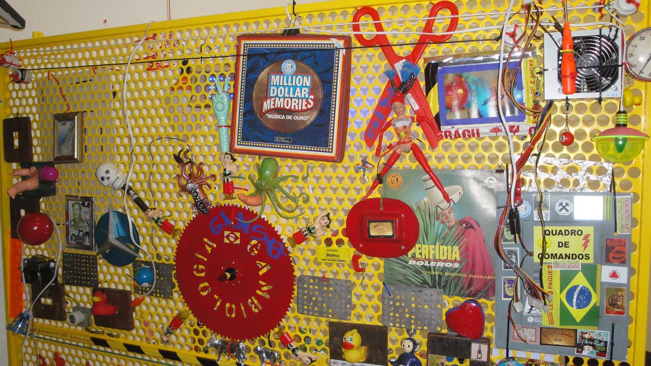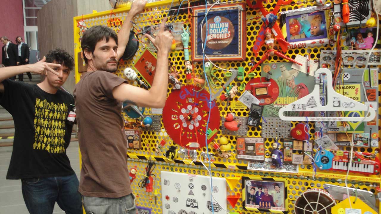 We are participating in the biennial with our Gambiological Armor and new interactive electronic sound devices: circuit bending keyboard, canned atari punk console, spatial ultra sonic hot glue gun and holy father joystick . Also present the Gambiological clothing flagged with the green high-brightness LEDs and reflective bands, among other peculiarities. Working with a 12 volt motorcycle battery, it was inaugurated with a performance by our Grand Master Goose, who circulated through the gallery also wearing an authentic Jury Rigged helmet and a Mickey Mouse Solution style mask, for the delight of those present. Thanks very much to everyone involved in the Zero1 Biennial, without exception.